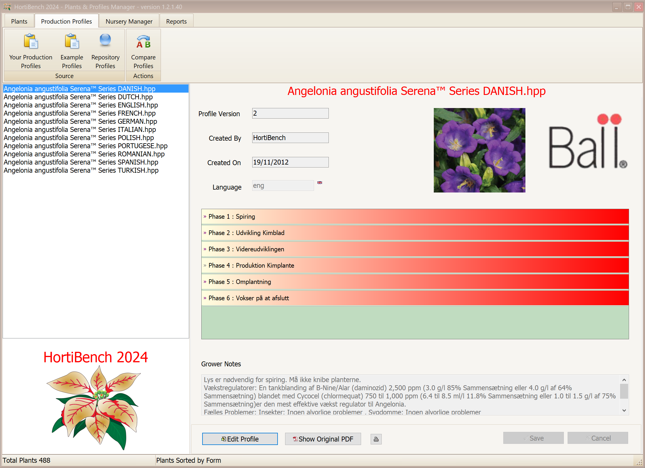 A Plant Production Profile can be used by you, the grower to define and record your growing knowledge and experience about certain plant varieties. By defining these Plant Production Profiles for the range of plants you grow, you will have a record of all the growing knowledge of the nursery which can be accessed by other members of staff whenever the grower is not available.